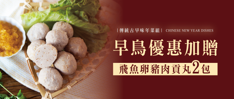 至2025-12-31T16:00:00.000+00:00截止 指定商品,【早鳥優惠】購買年菜組合加贈『飛魚卵豬肉貢丸x2』