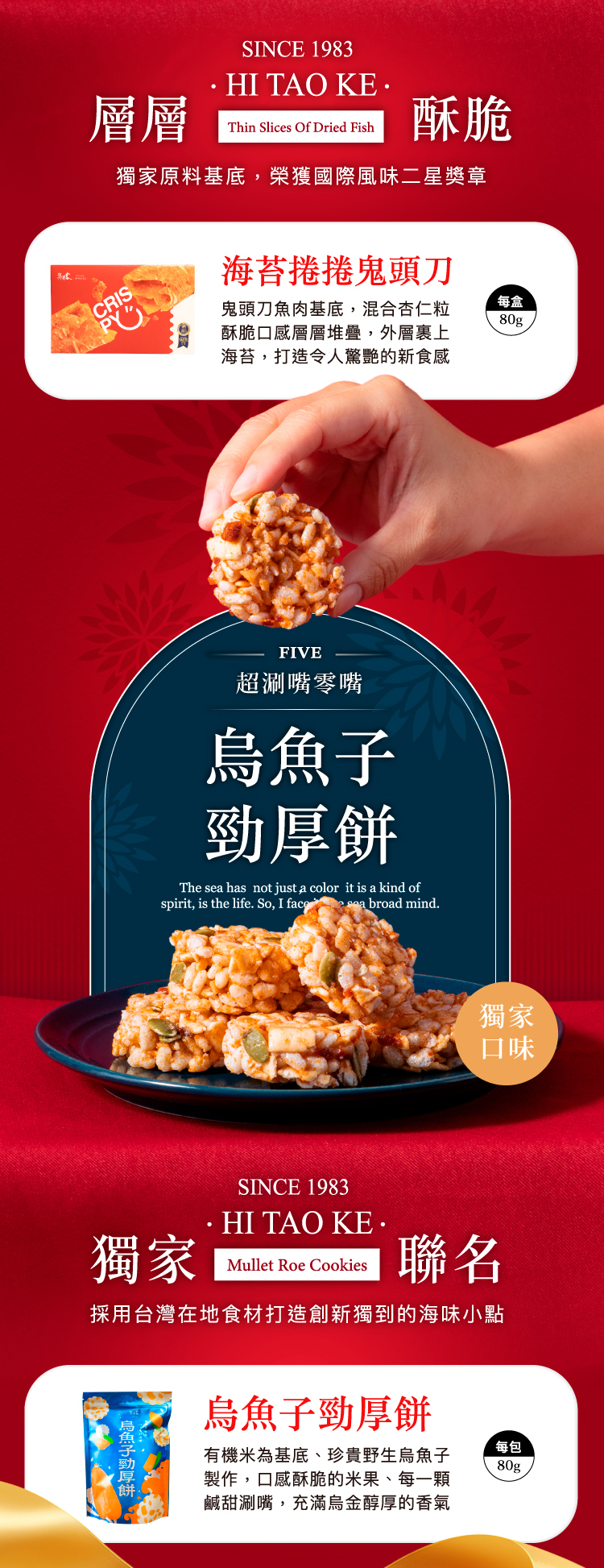 🌟禮盒內容:海苔捲捲鬼頭刀/盒+烏魚子勁厚餅/包+碳烤魷魚絲/包